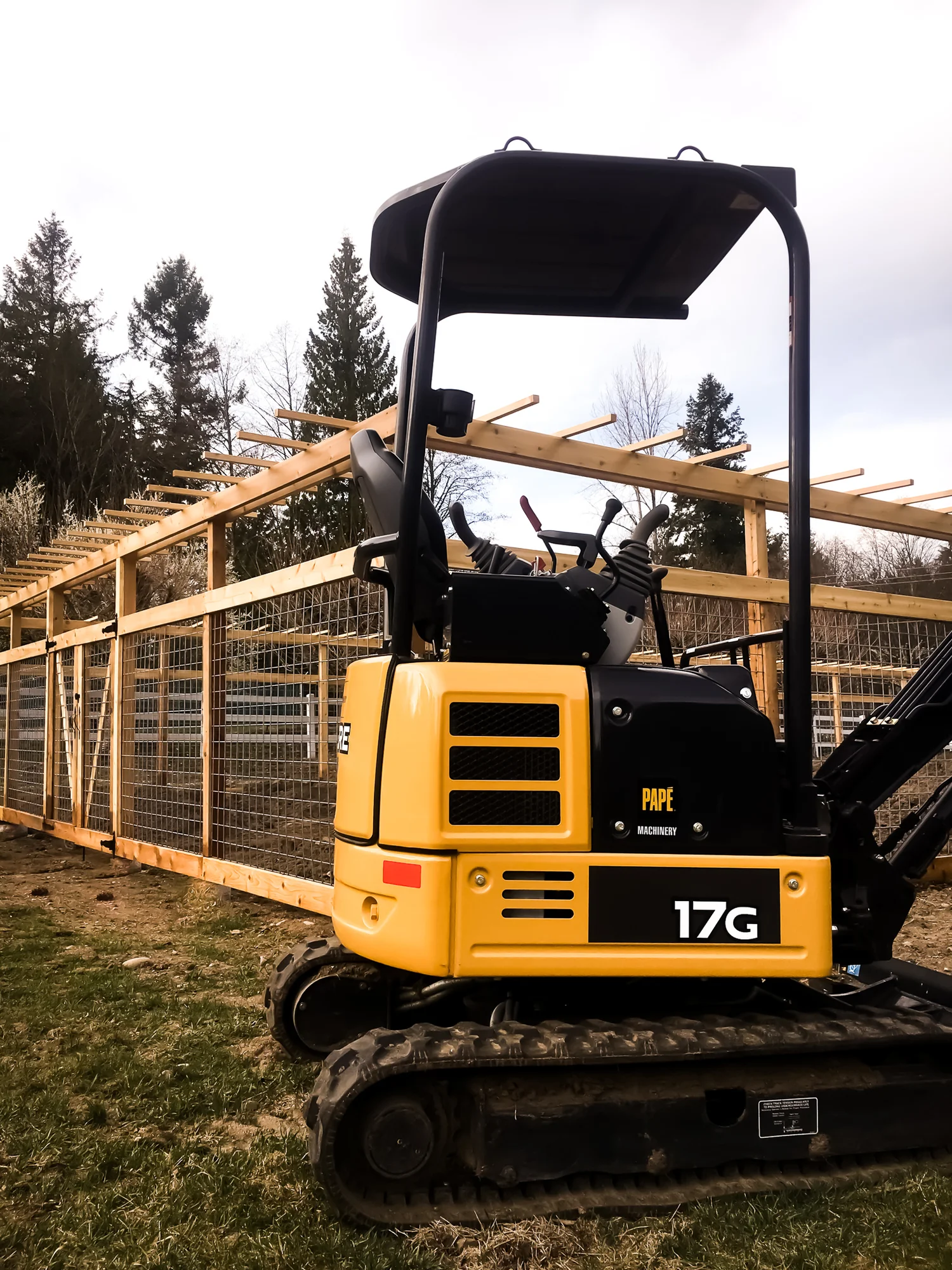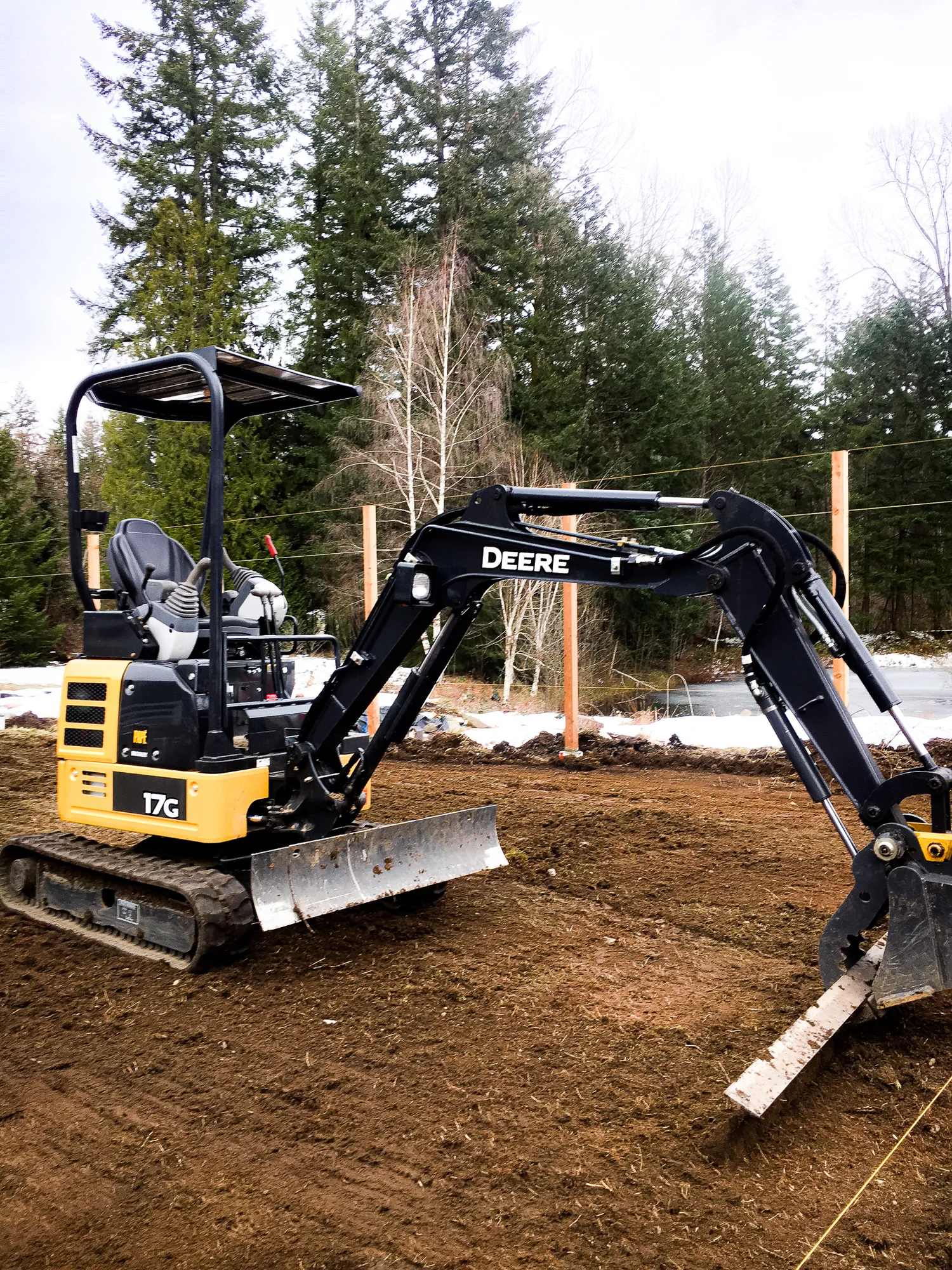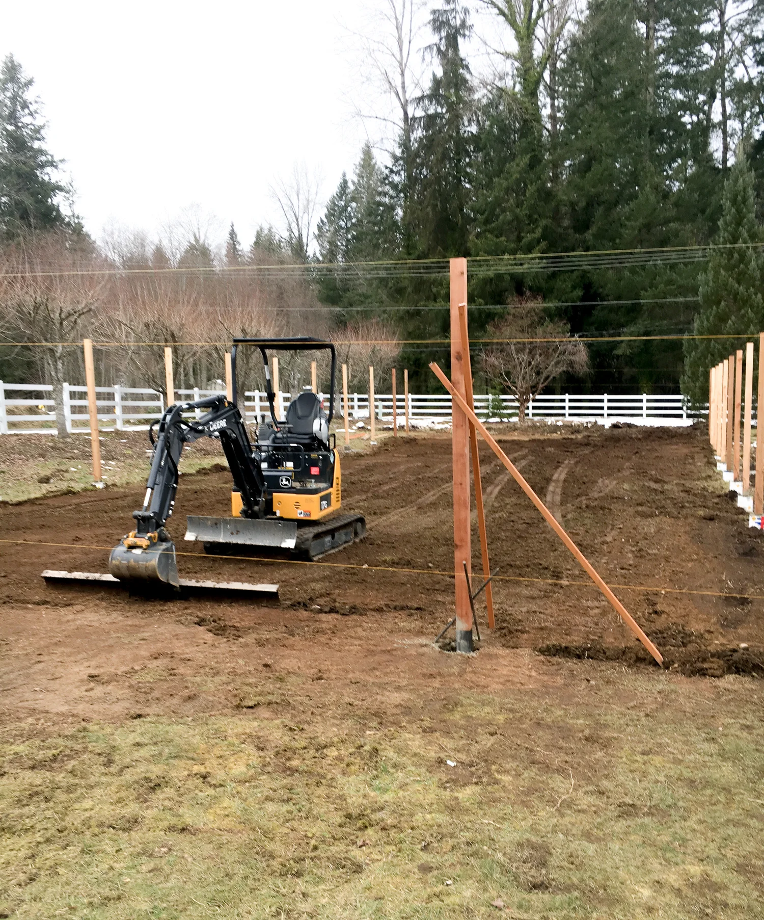 Building this fence took all the man power and machine power we could get. We had to grade this massive space and used our John Deere Excavator to do it. Not like the guys mind though boys love their toys!!!