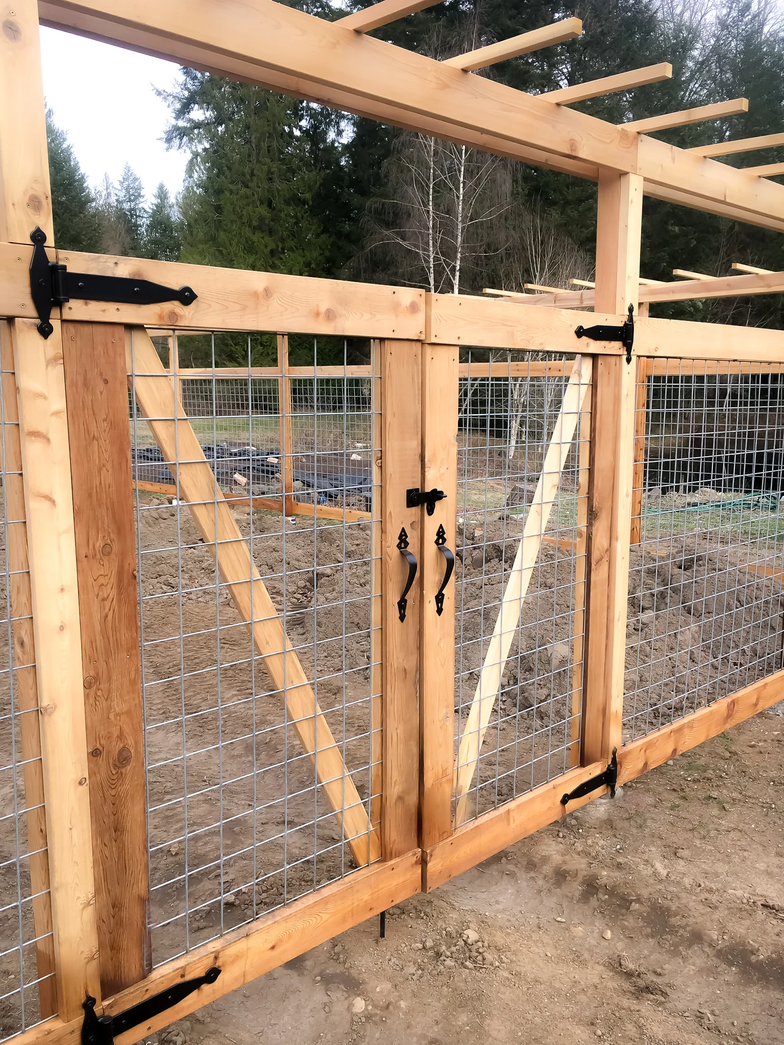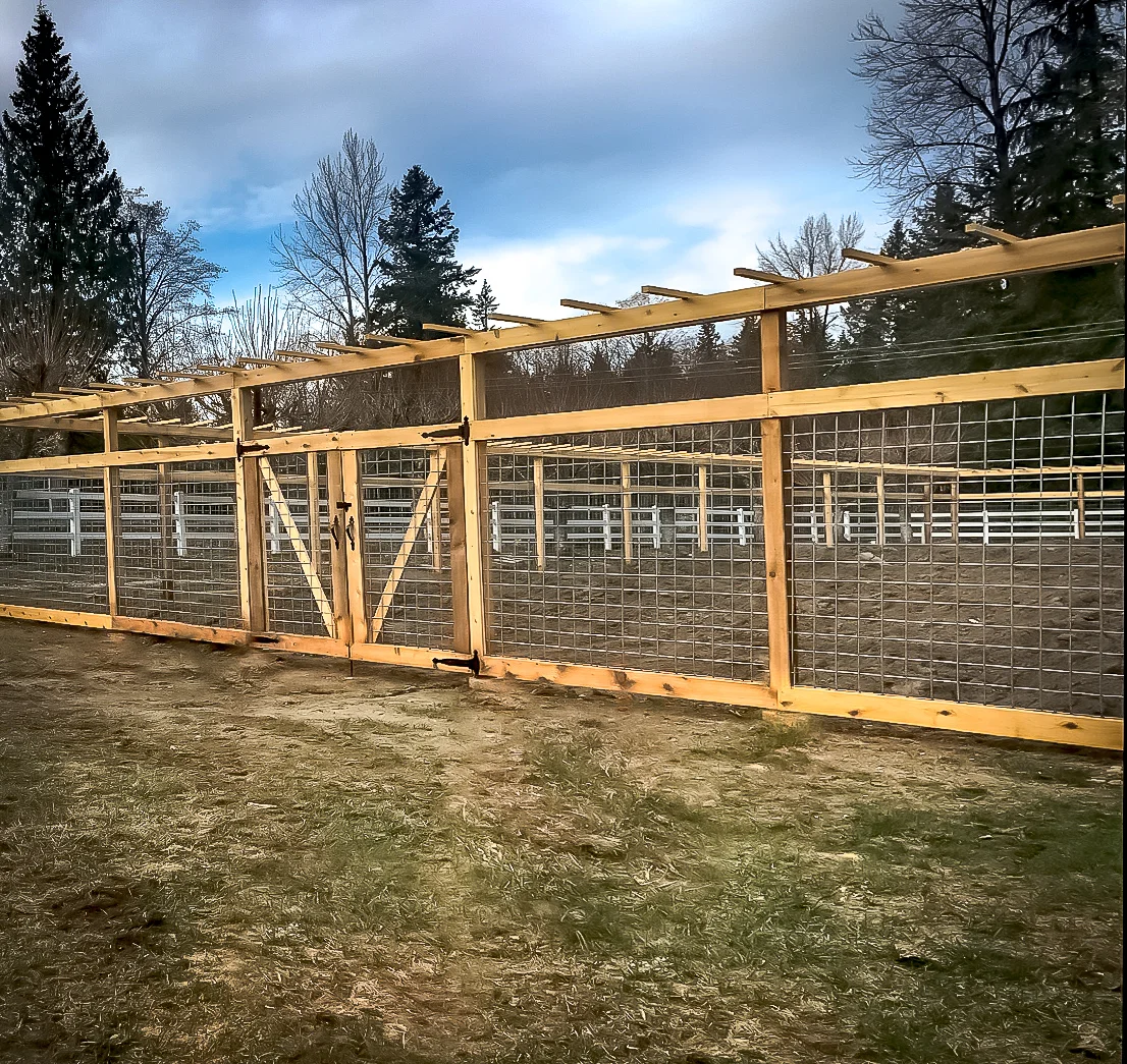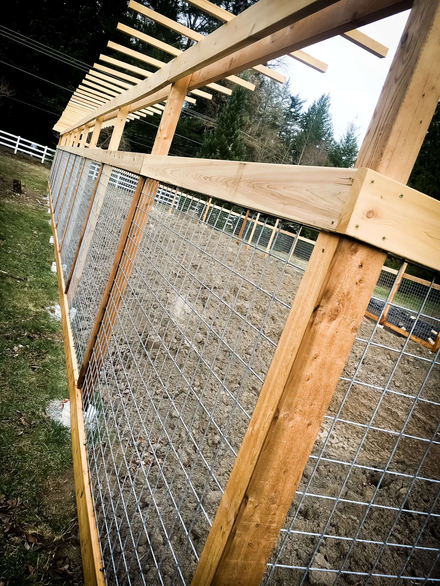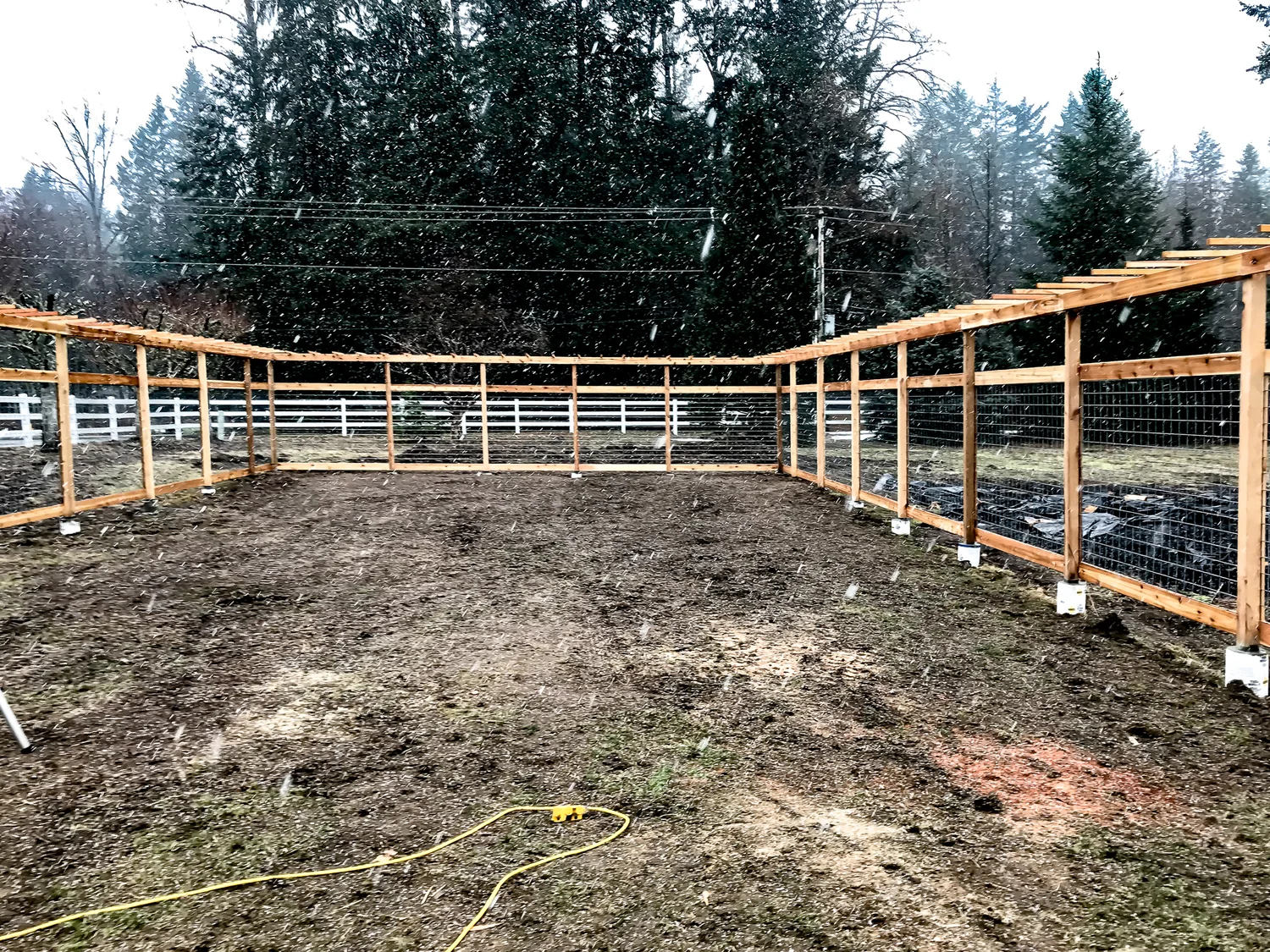 Progress progress progress… Thankfully we have the equipment needed to penetrate the frozen ground to concrete the posts in. Getting everything level on a sloped ground required a lot of engineering on our part. Making sure the posts and trellis was level all the way around was quite the task.
