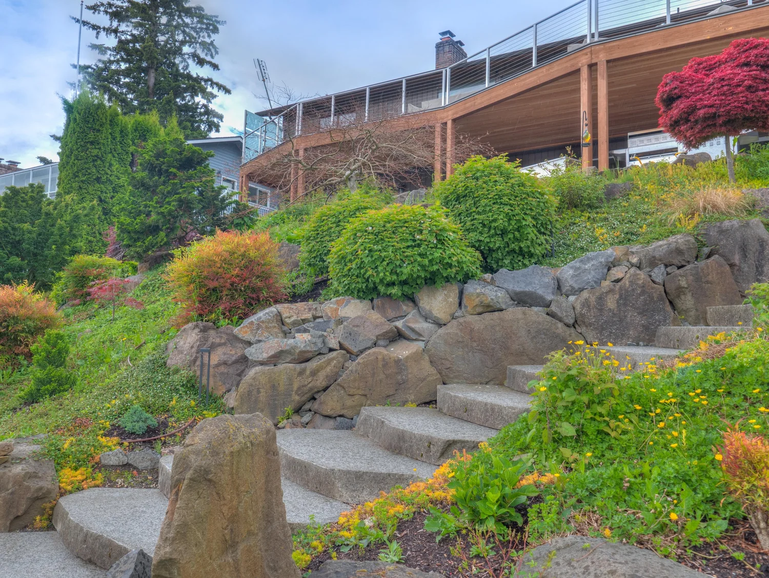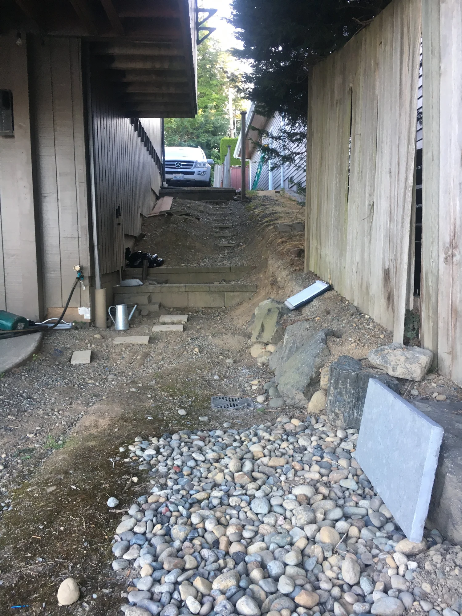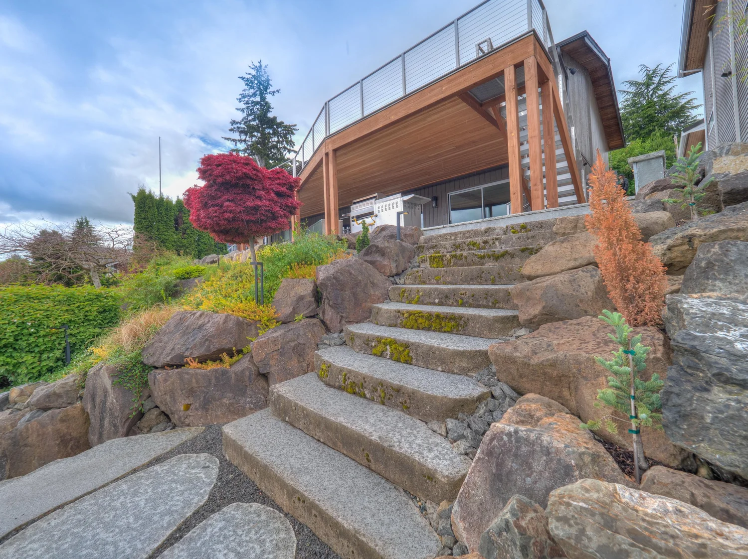Each stone stair riser weighs hundreds of pounds and is strategically placed by hand and excavator using extreme power suction grips…