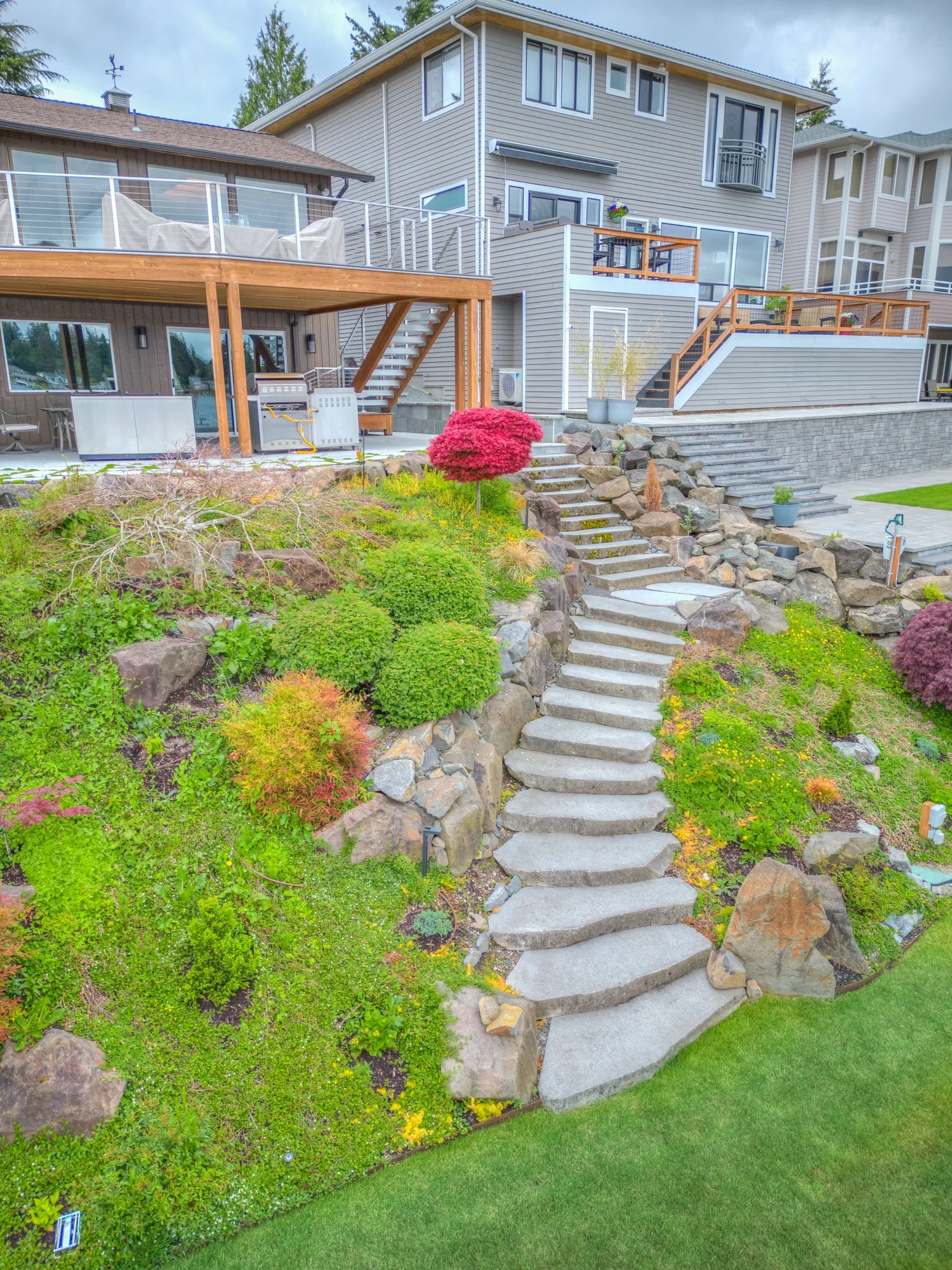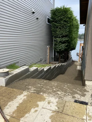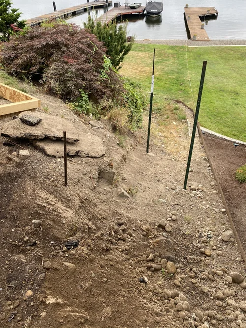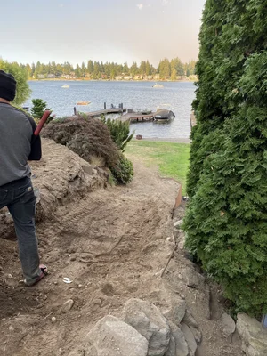 Our clients prefer a natural aesthetic, we designed and created two stair cases, a paver patio, flagstone patio, new sod, irrigation system, bulkhead, sandy beach and ultimately wow factor for this amazing family. Check out the before pictures below!