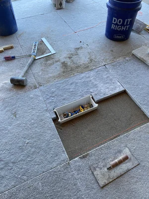 Now onto the good stuff, the construction! We laid the footings for the deck, excavated and graded, installed electrical and gas lines the space to get ready for the amazing paver patio, flagstone patio, Trex deck, outdoor lighting, beach, bulkhead, irrigation system, sod, and outdoor kitchen. This job was a ton of work, and definitely worth the end result…
